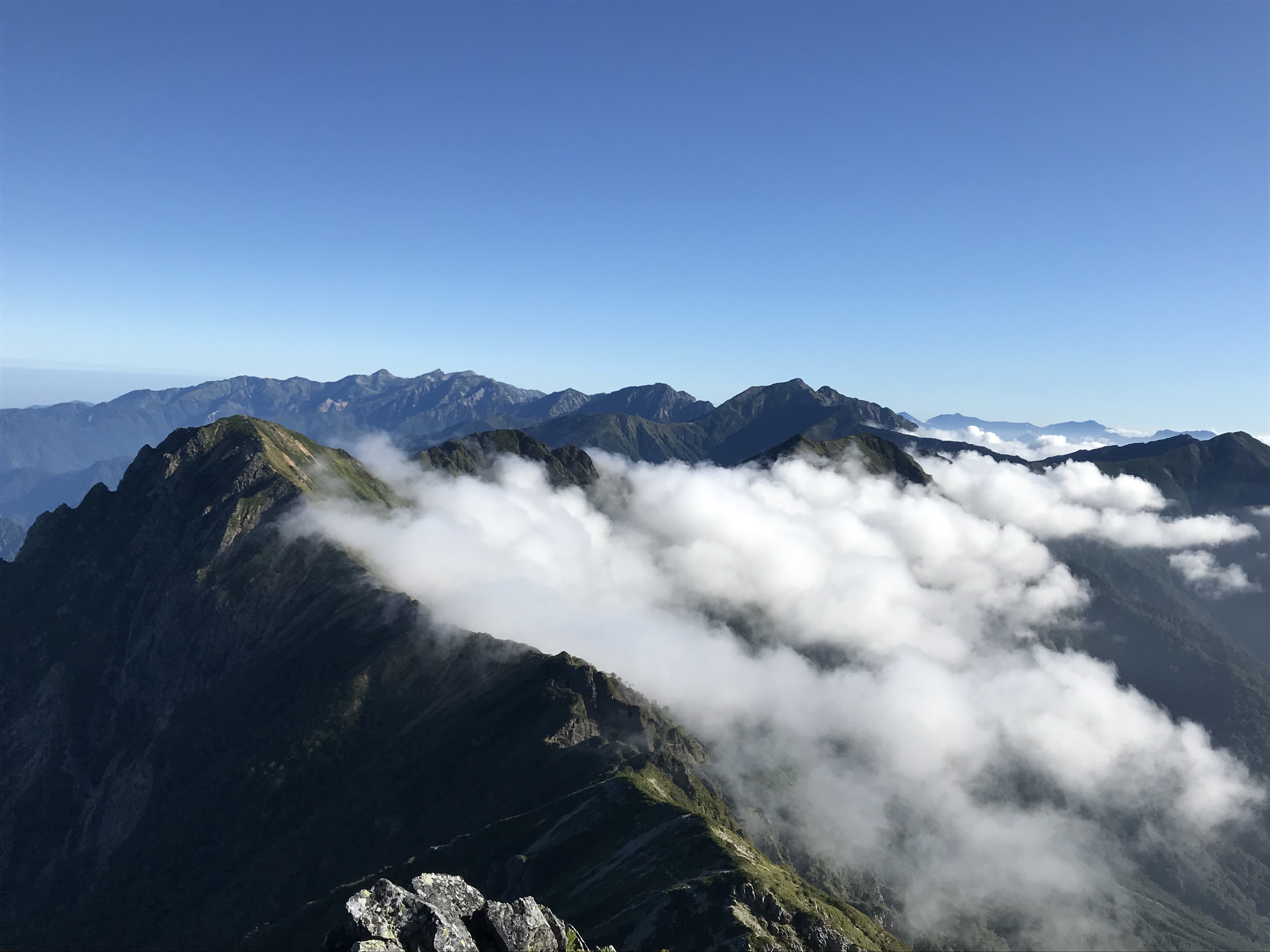 秋山 針ノ木岳周回 Posted on 2019年9月15日2019年9月17日 by やまのぶりん 9月14〜15日 メンバー Nリーダー、N野、H田、Eトク、Sクマ コース 扇沢〜大沢小屋〜針ノ木峠〜蓮華岳〜針ノ木小屋(テント泊) 針ノ木小屋〜針ノ木岳〜ズバリ岳〜赤沢岳〜鳴沢岳〜新越小屋〜新岩小屋岳〜種池小屋〜柏原新道登山口〜扇沢 槍ヶ岳と雲海(針ノ木峠より)
